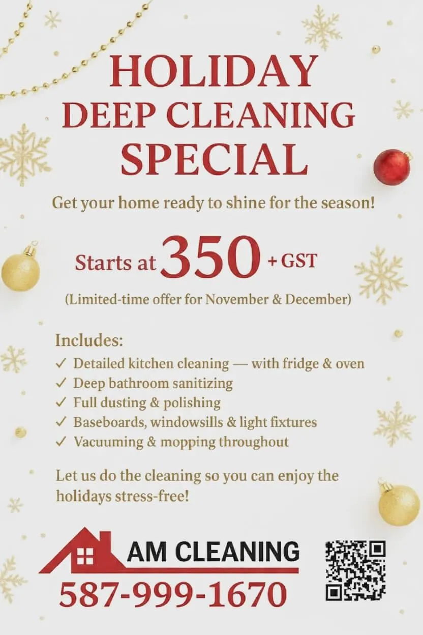 AM Cleaning is a family-operated company proudly serving Calgary and nearby communities. We deliver reliable, high-quality residential and commercial cleaning, treating every client like family and every space like our own.